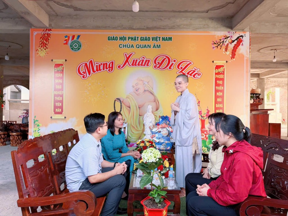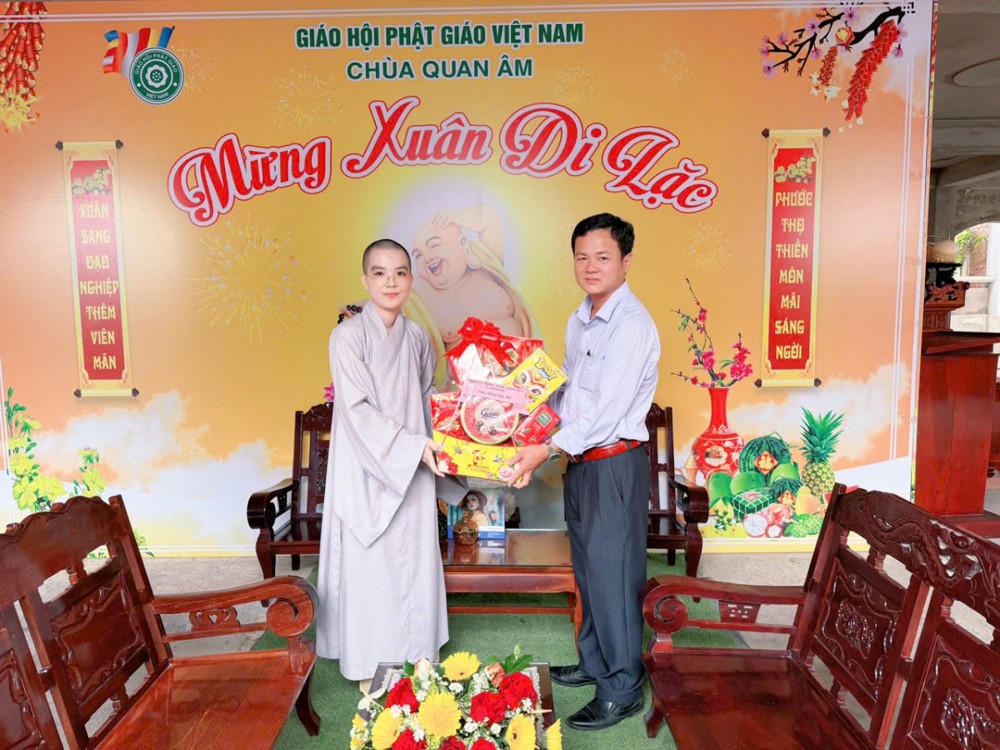 Tại các buổi gặp mặt, đại diện lãnh đạo hai xã đã gửi lời chúc mừng năm mới, vấn an sức khỏe Ni sư trụ trì cùng toàn thể chư Ni, Phật tử; đồng thời ghi nhận và đánh giá cao những đóng góp tích cực của chùa Quan Âm trong công tác an sinh xã hội, hoạt động từ thiện nhân đạo và sự đồng hành cùng địa phương trong xây dựng đời sống văn hóa.
