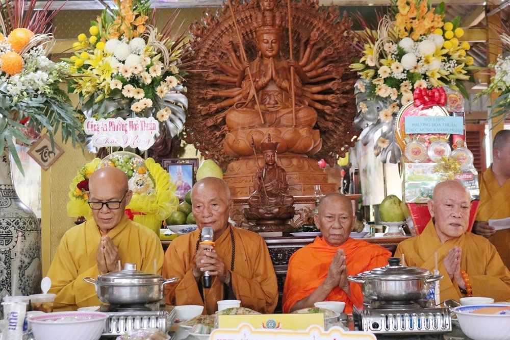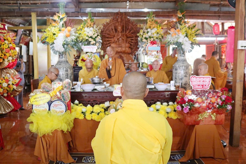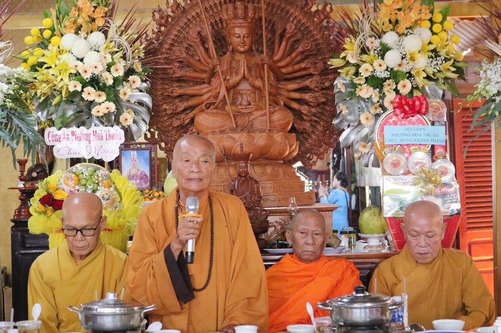 Tại buổi lễ, HT.Thích Phước Minh - Chứng minh BTS GHPGVN tỉnh Vĩnh Long ban đạo từ tán dương tinh thần phụng sự Phật pháp của Đại đức Trụ trì, cùng toàn thể quý nam nữ Phật tử gần xa trên tinh thần hộ trì Tam bảo của người Phật tử tại gia, đã đồng tâm trợ duyên cho Thầy Trụ trì thi công hoàn thành các hạng mục trọng tâm gia đoạn đầu đối với một ngôi Tam bảo cơ bản cần phải có. Mong rằng, trong thời gian tới quý Phật tử tiếp tục đồng hành với Thầy Trụ trì để xây dựng hoàn thành các công trình còn lại, góp phần cho ngôi Chùa thêm phần khang trang, để cho chư Tăng, Ni và Phật tử gần xa trở về đây tu tập, lễ bái gieo hạt giống từ bi trong cửa Phật, tự thân mỗi vị phải tinh tấn nỗ lực tu tập để có sự an lạc trong cuộc sống, đó là mục đích tối thượng của những người con Phật cần hướng đến và đạt được theo lời Phật dạy.
