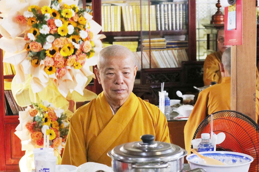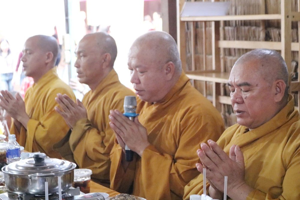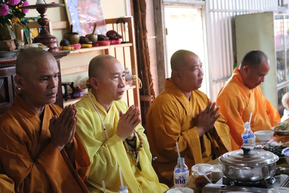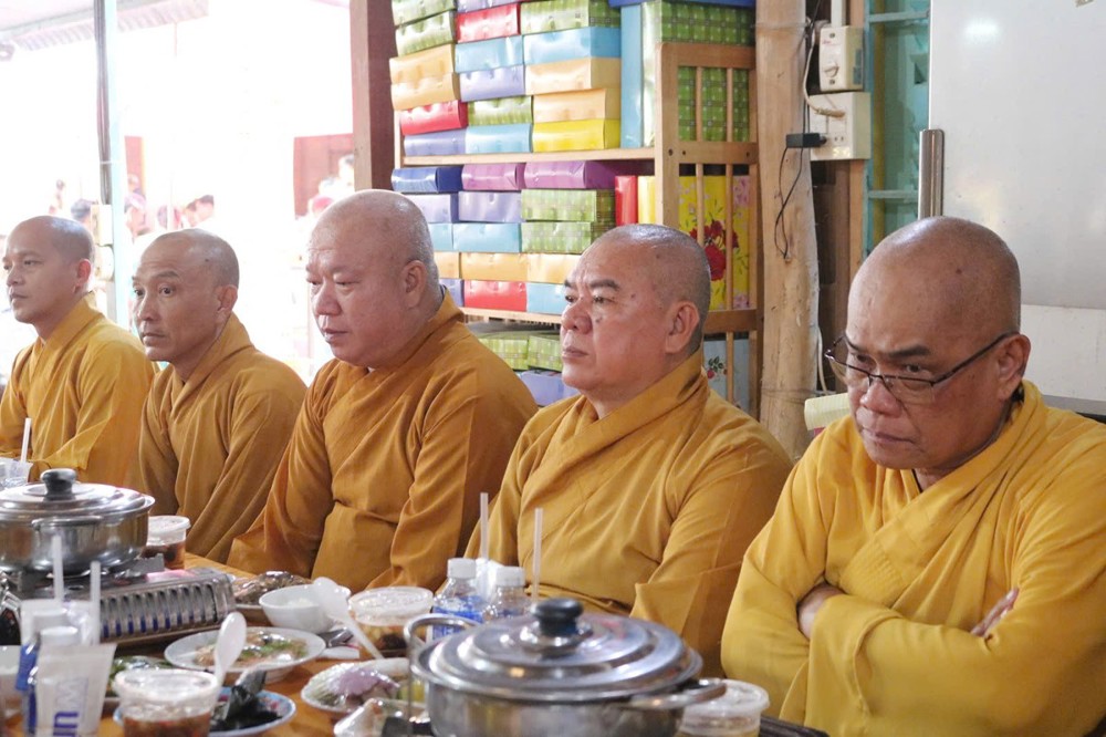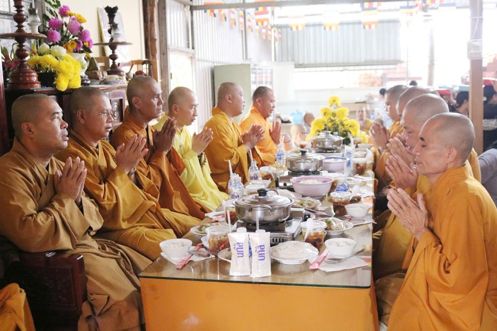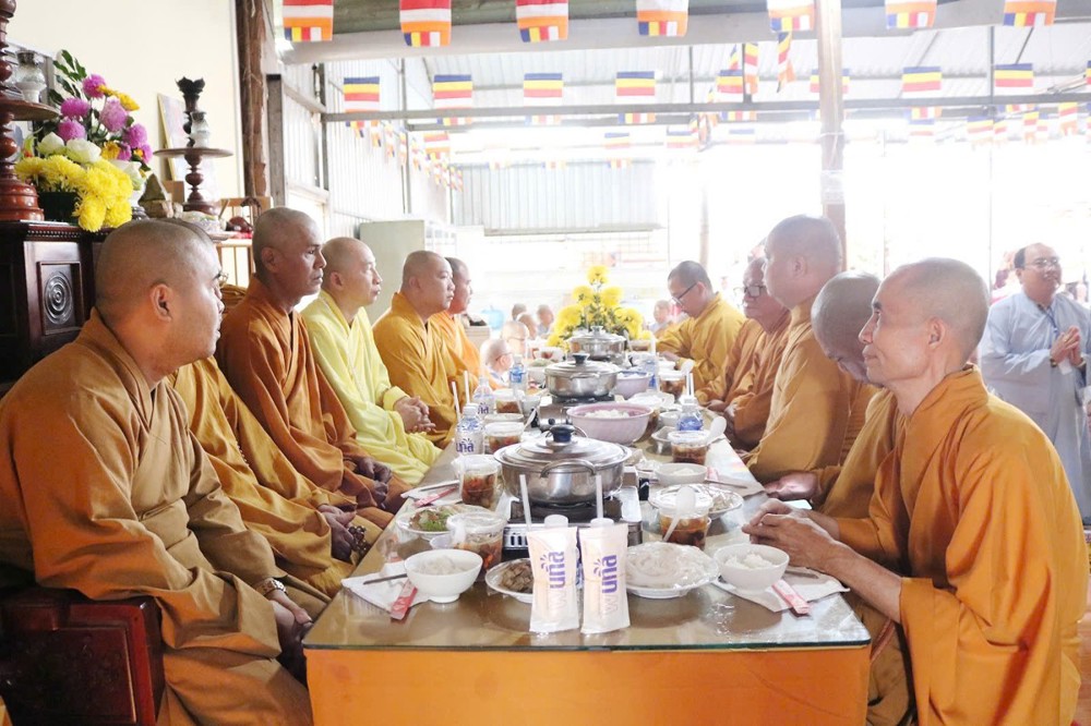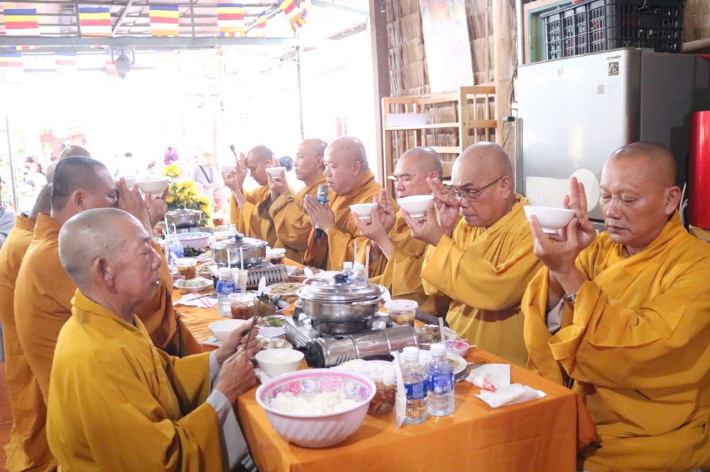 Sau lời đạo từ của Hòa thượng chứng minh, TT.Thích Tâm Khiết - Phó trưởng Ban kiêm Chánh Thư ký BTS GHPGVN tỉnh Vĩnh Long chủ trì thực hiện nghi thức cúng Quá đường và thọ trai trong chánh niệm tỉnh giác.