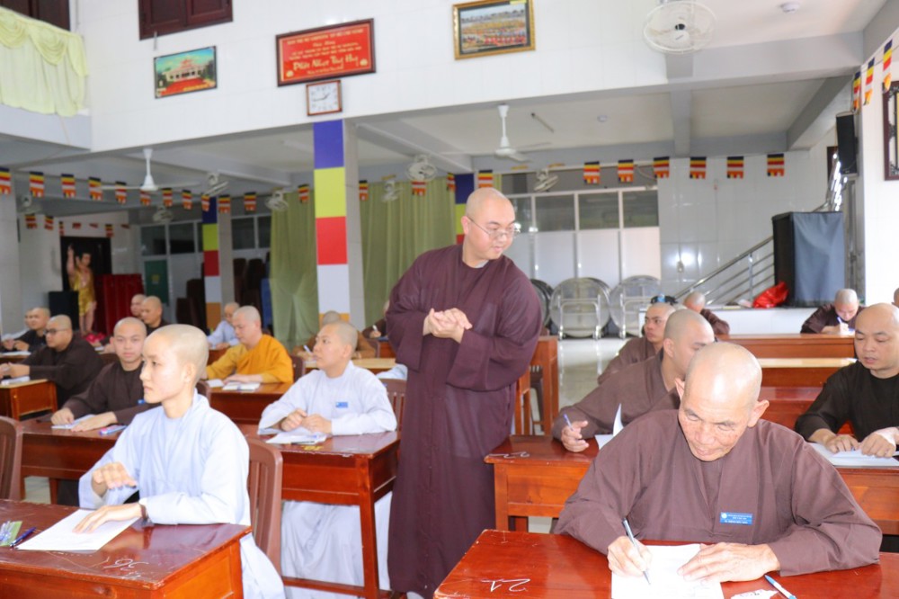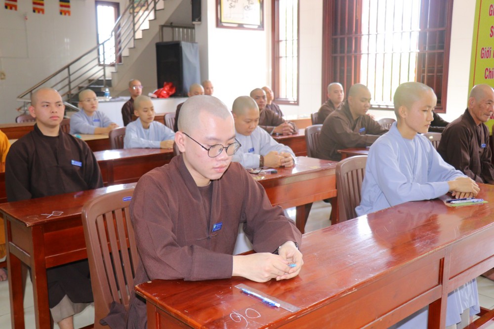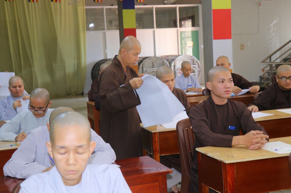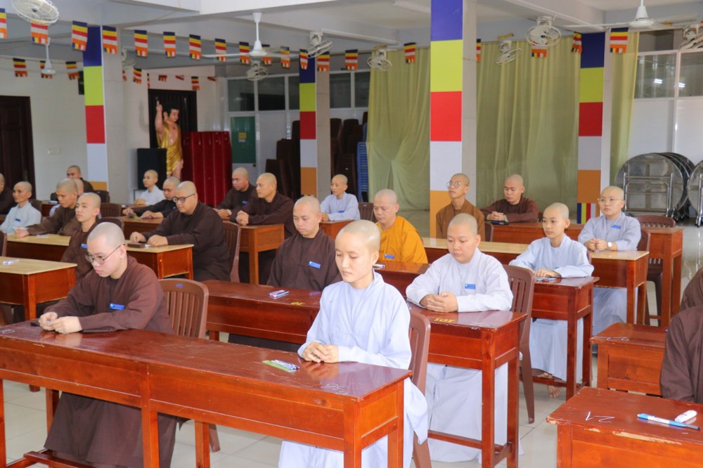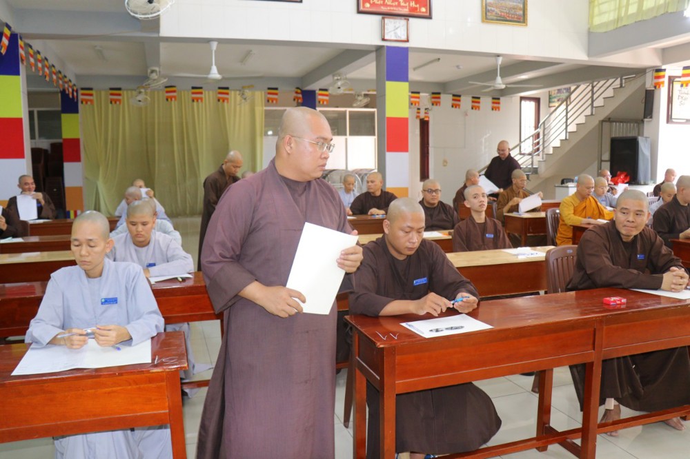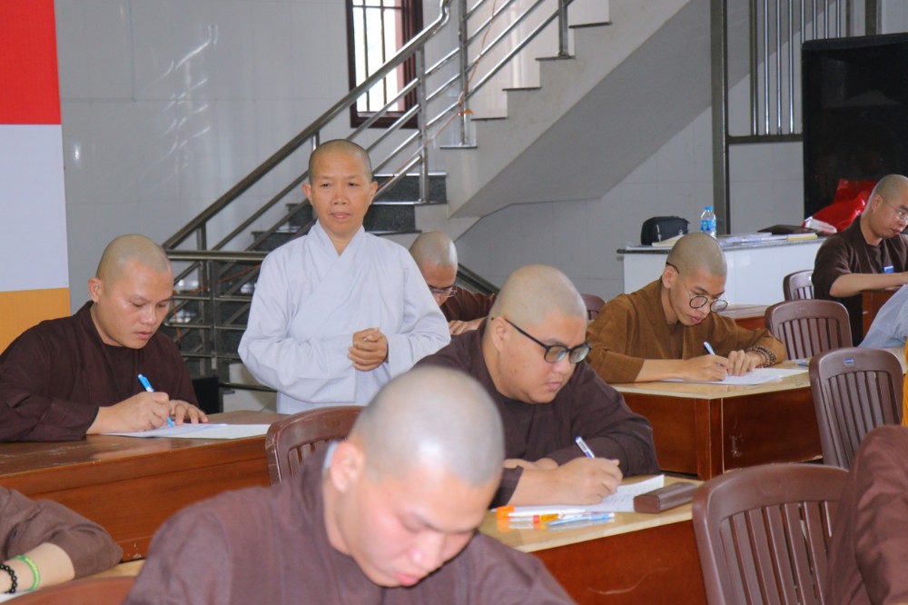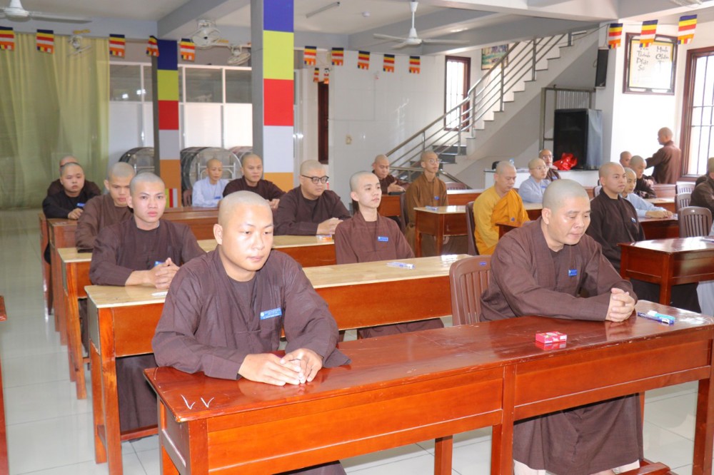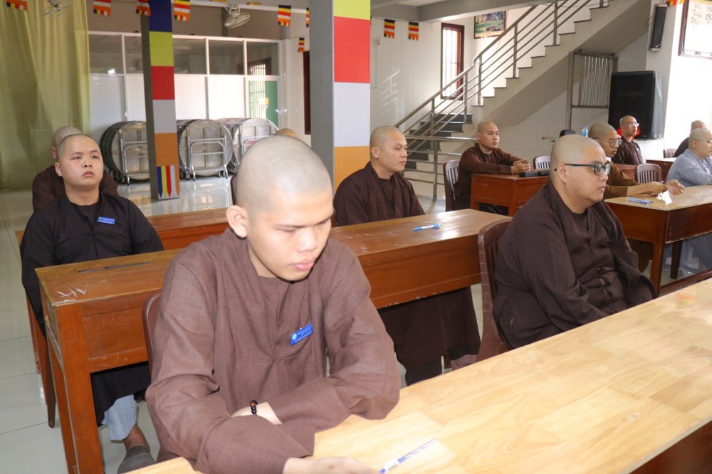 Trước khi bắt đầu môn thi đầu tiên, ĐĐ. Thích Minh Thịnh – Hiệu phó Học vụ đã nhắc lại một số quy tắc nội quy phòng thi, đồng thời nhấn mạnh tinh thần làm bài nghiêm túc, trung thực, đúng quy chế; qua đó góp phần giữ gìn sự trang nghiêm của môi trường giáo dục Phật học.