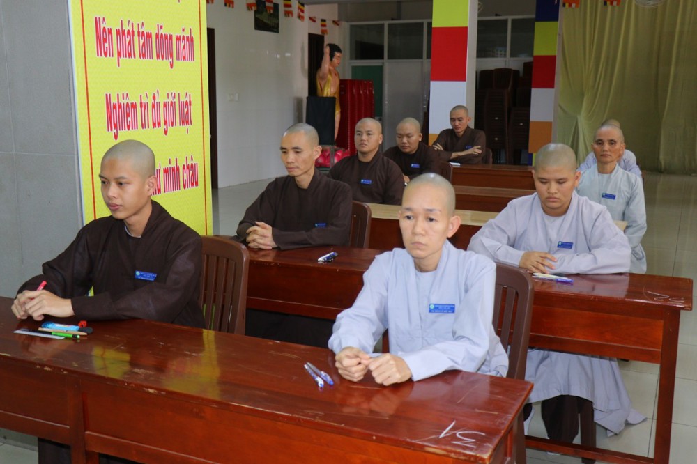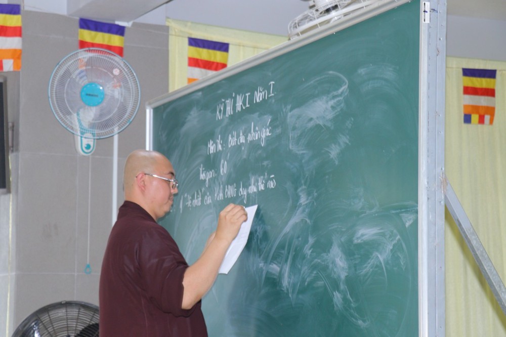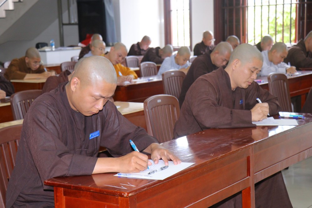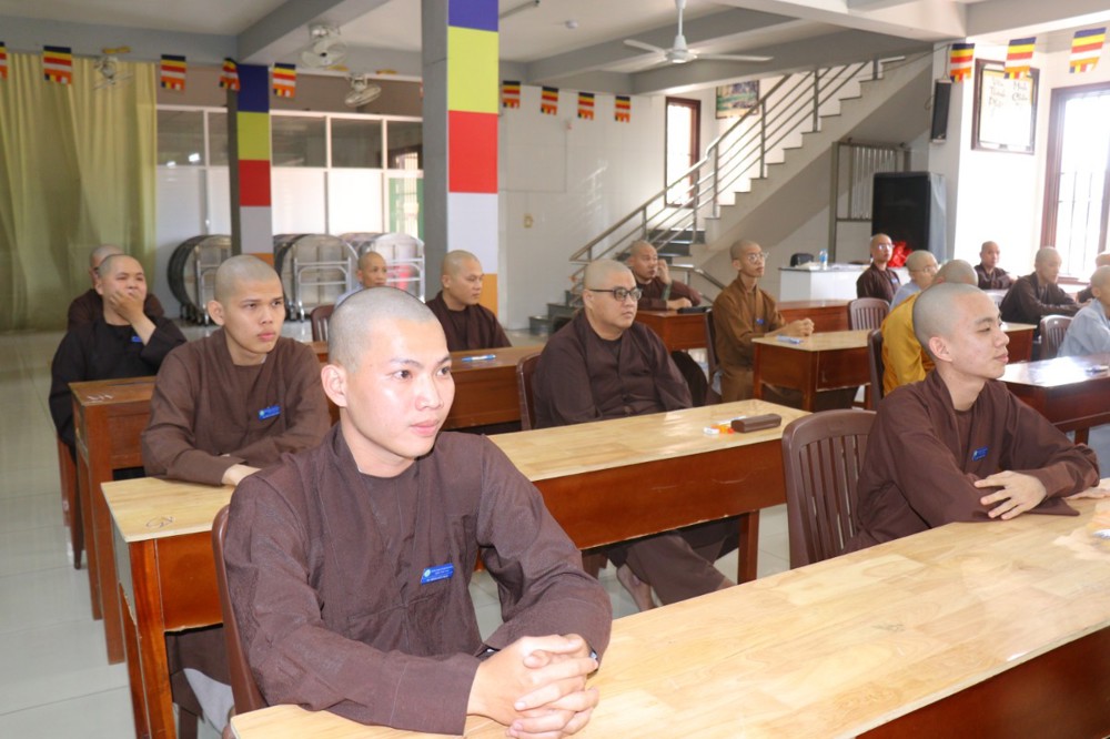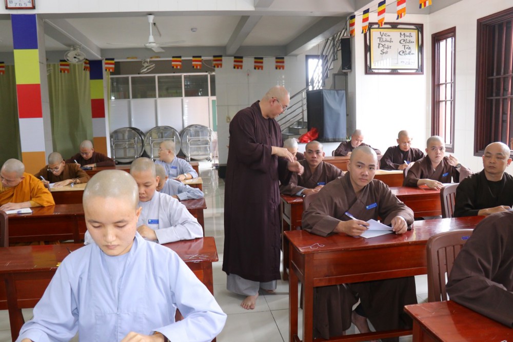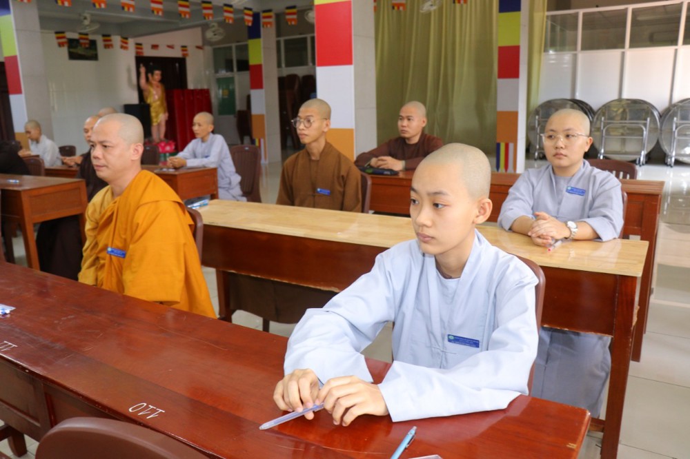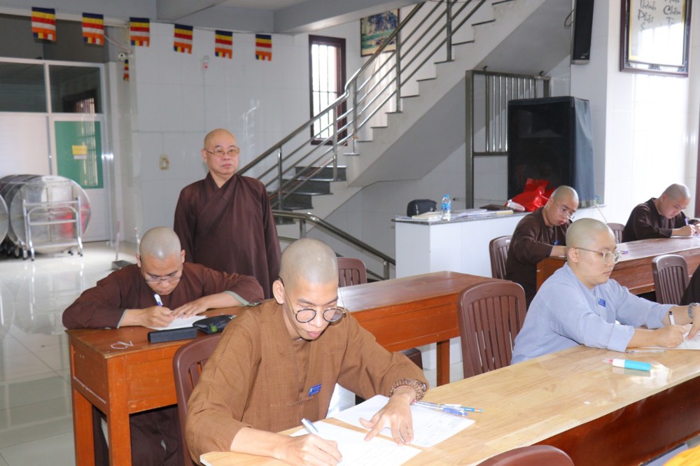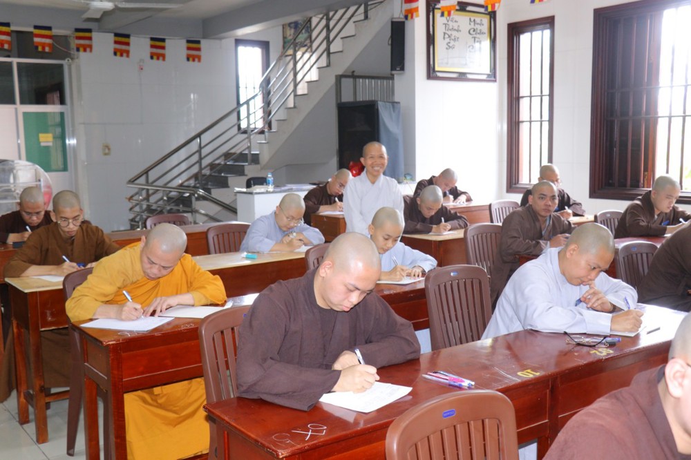 Trước khi bắt đầu môn thi đầu tiên, ĐĐ. Thích Minh Thịnh – Hiệu phó Học vụ đã nhắc lại một số quy tắc nội quy phòng thi, đồng thời nhấn mạnh tinh thần làm bài nghiêm túc, trung thực, đúng quy chế; qua đó góp phần giữ gìn sự trang nghiêm của môi trường giáo dục Phật học.