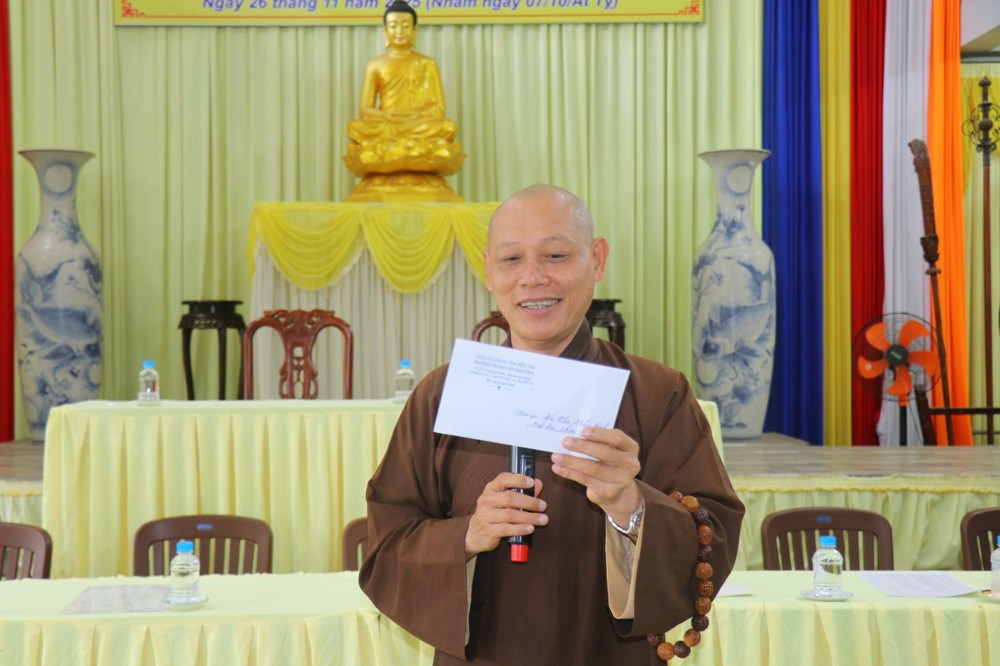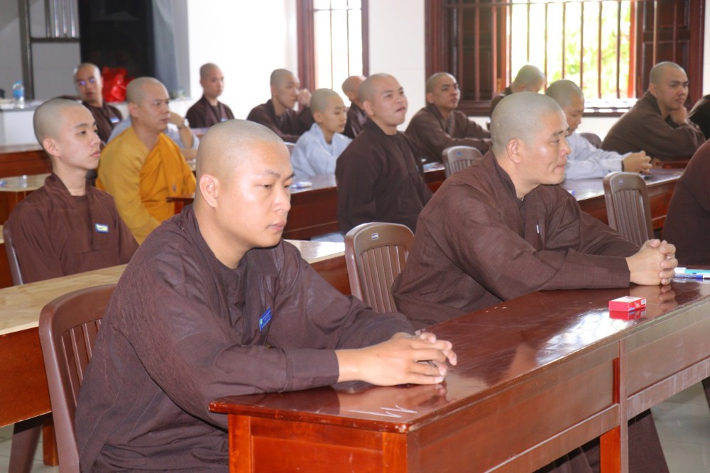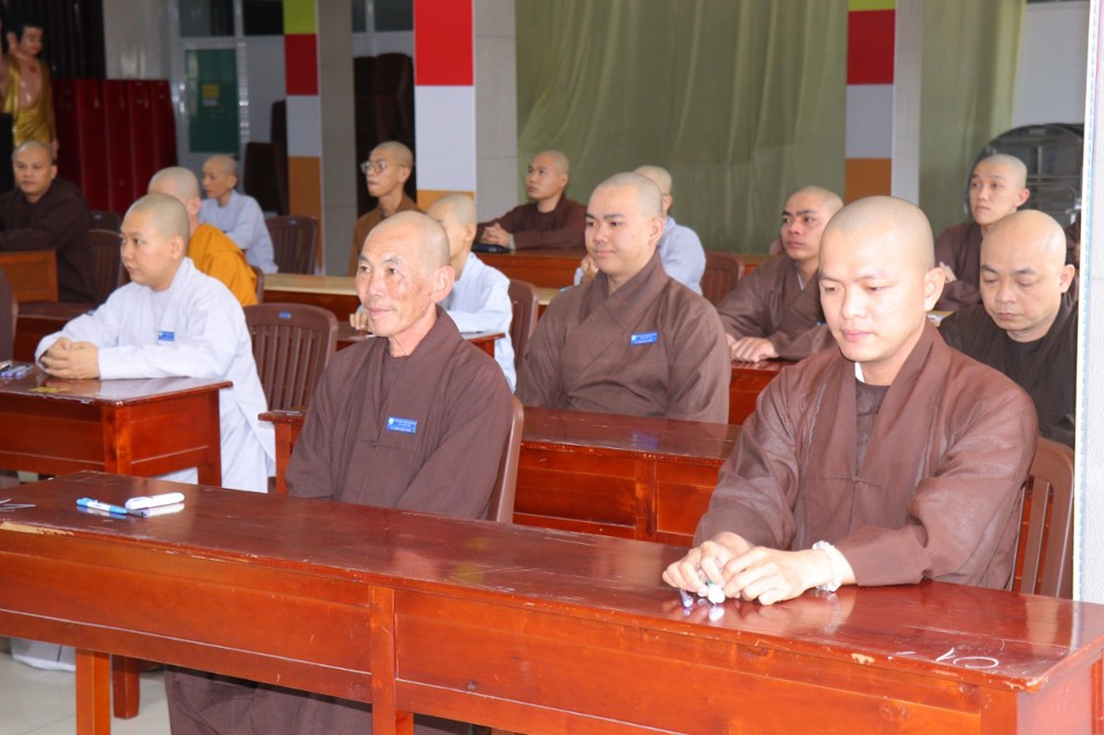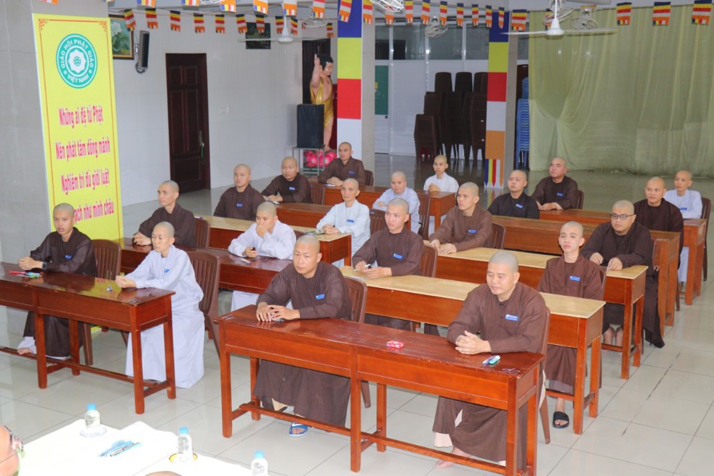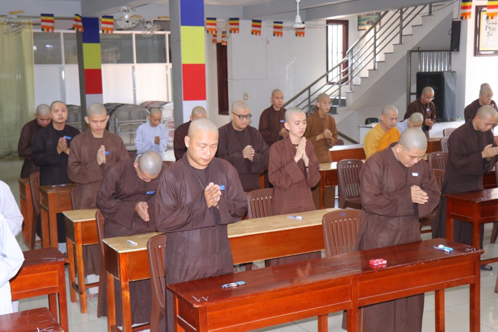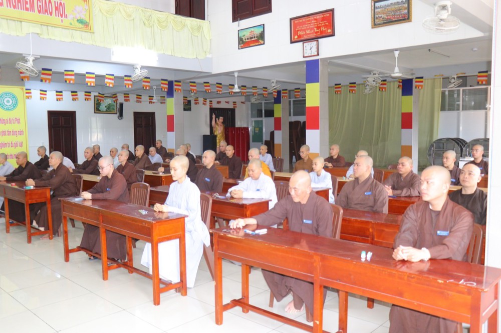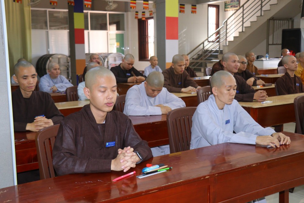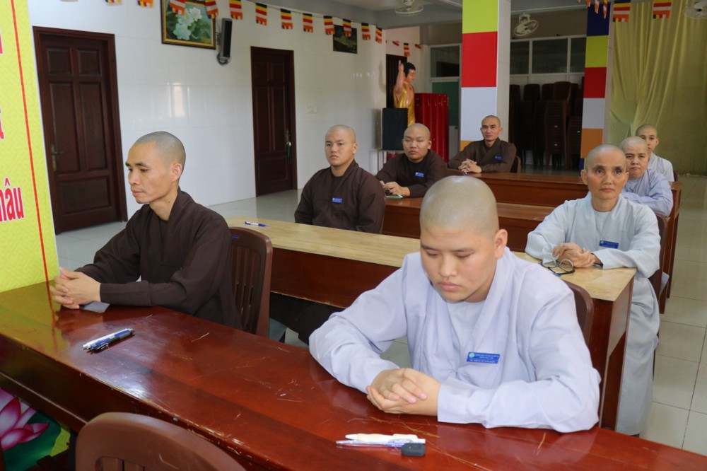 Trước khi bắt đầu môn thi đầu tiên, ĐĐ. Thích Minh Thịnh – Hiệu phó Học vụ đã nhắc lại một số quy tắc nội quy phòng thi, đồng thời nhấn mạnh tinh thần làm bài nghiêm túc, trung thực, đúng quy chế; qua đó góp phần giữ gìn sự trang nghiêm của môi trường giáo dục Phật học.