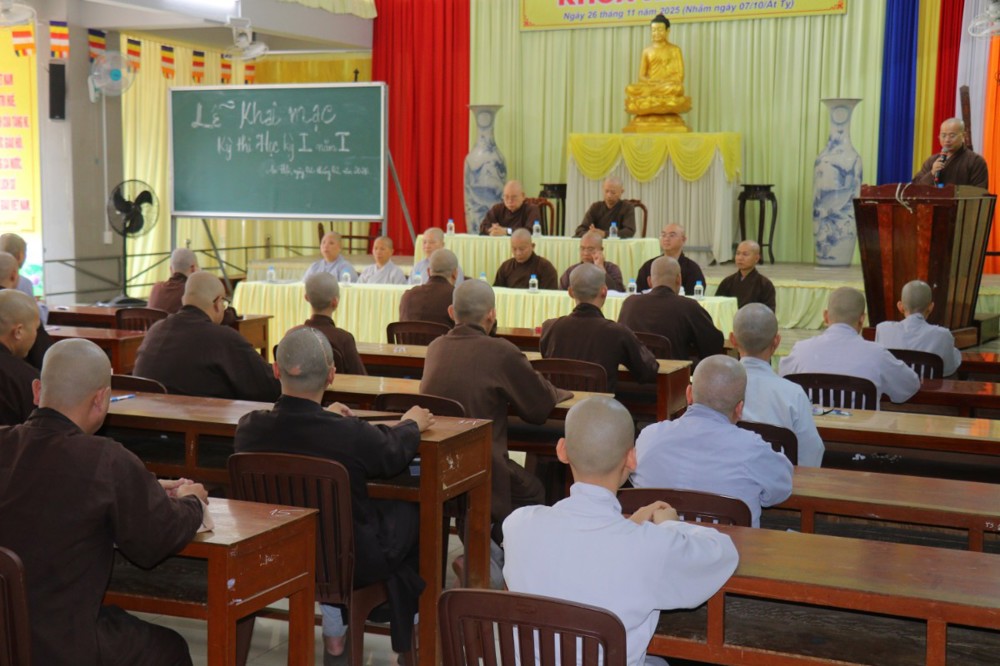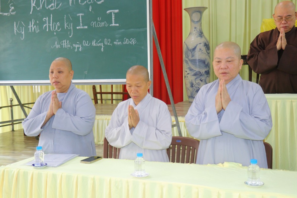 Theo kế hoạch, kỳ Thi học Kỳ 1, năm thứ nhất hiện có 39 Tăng Ni sinh tham dự, diễn ra từ ngày 02 đến ngày 07/02/2026, với các môn chương trình học năm thứ nhất gồm: Kinh Bát Đại Nhơn Giác, Kinh Di Giáo, Kinh Thập Thiện, Nghĩa và thực hành Nghi lễ, Sơ đẳng Giáo khoa thư, Luật Trường hàng, Lịch sử Phật giáo Ấn Độ, Đức Phật và Thánh chúng, Hán văn, Anh văn và Việt văn.
