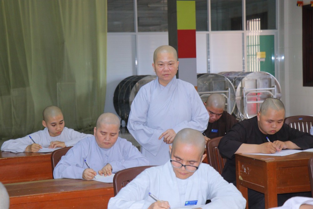 Đến thăm hỏi, động viên và giám sát kỳ thi có sự hiện diện của chư Tôn đức Ban Giám hiệu và Ban Giám thị: Đại đức Thích Minh Thịnh – Hiệu phó Học vụ; ĐĐ. Thích Trung Hòa – Hiệu phó Giám luật Tăng; ĐĐ.Thích Vạn Bình – Chánh Thư ký kiêm Giáo thọ; ĐĐ. Thích Minh Hải – Tổng Giám thị kiêm Giáo thọ; NS. Thích nữ Như Uyên – Hiệu phó Giám luật Ni; NS. Thích nữ Chúc Nghiêm – Phó Thư ký, Chánh Văn phòng; NS. Thích nữ Như Phước, ĐĐ. Thích Đạt Ma Hải Thuận, ĐĐ. Thích Giác Tú, ĐĐ. Thích Minh Lực, ĐĐ. Thích Đồng Phương, ĐĐ. Thích Thiện Tấn – đồng đảm nhiệm công tác giám thị phòng thi, góp phần bảo đảm kỳ thi được diễn ra nghiêm túc và đúng Nội quy.
