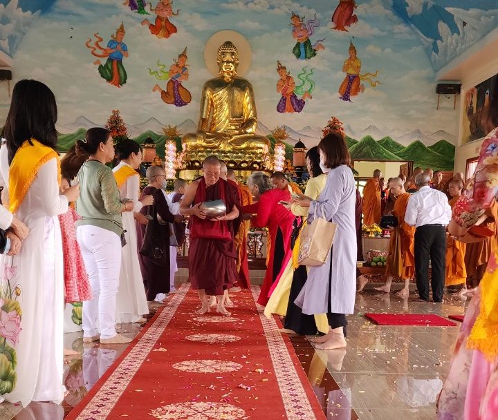 Thí chủ chính thức của đại lễ năm nay là gia đình chú Ngọc Anh – cô Thùy Chung, gia đình Nam Thái, gia đình thầy Bính – cô Cẩm cùng sự chung hùn của quý Tu nữ và thiện tín gần xa. Đại diện gia đình thí chủ có lời phát biểu cảm tưởng và tác trình duyên sự cúng dường y Kaṭhina đến chư Tỳ-khưu-tăng đã an cư ba tháng mùa mưa tại Thiền viện Thiện Minh năm nay.