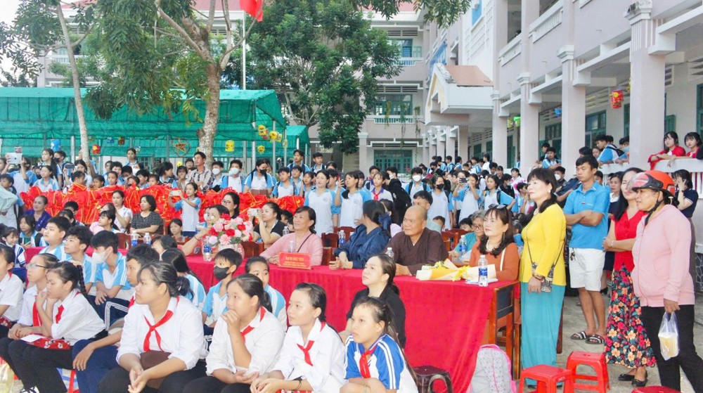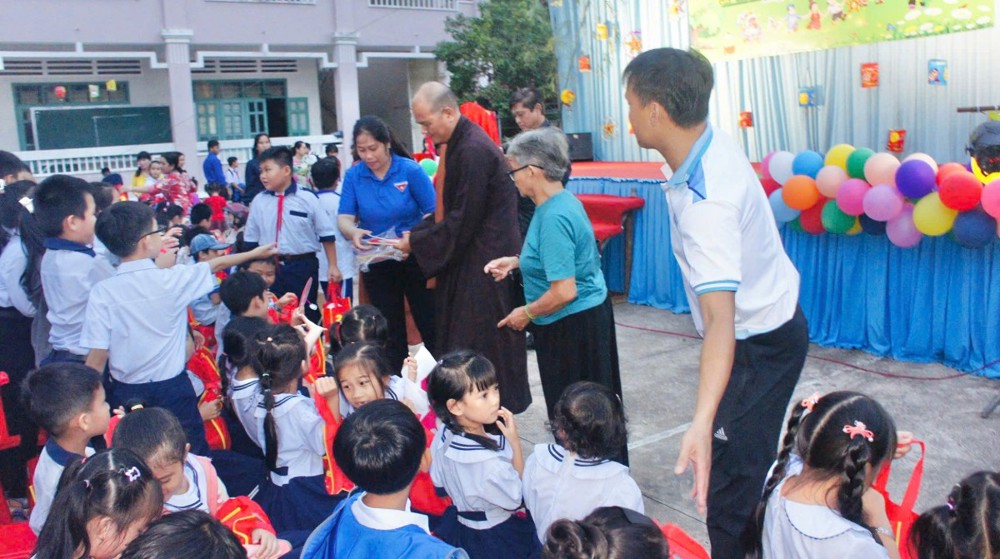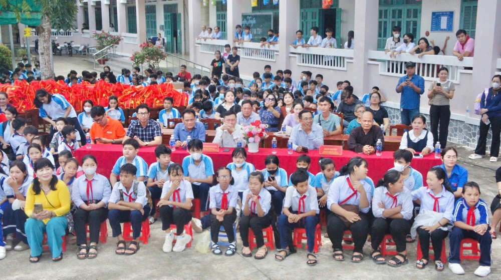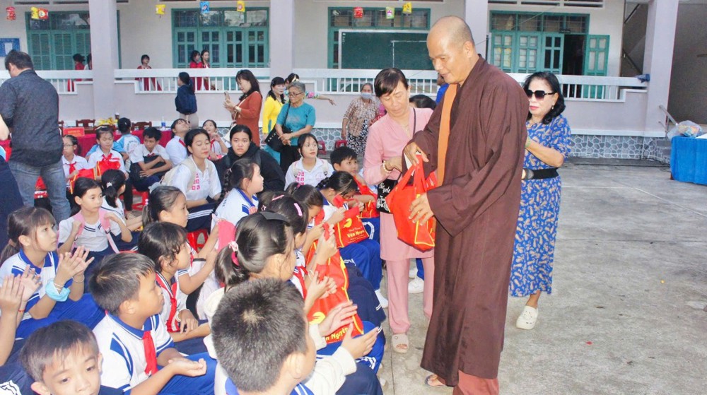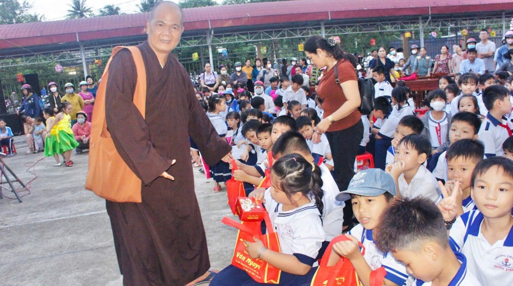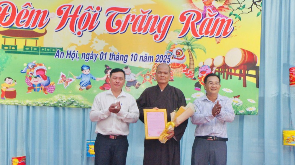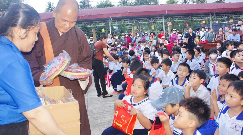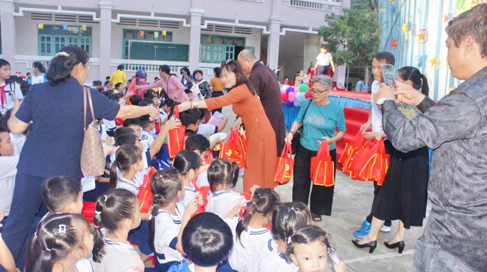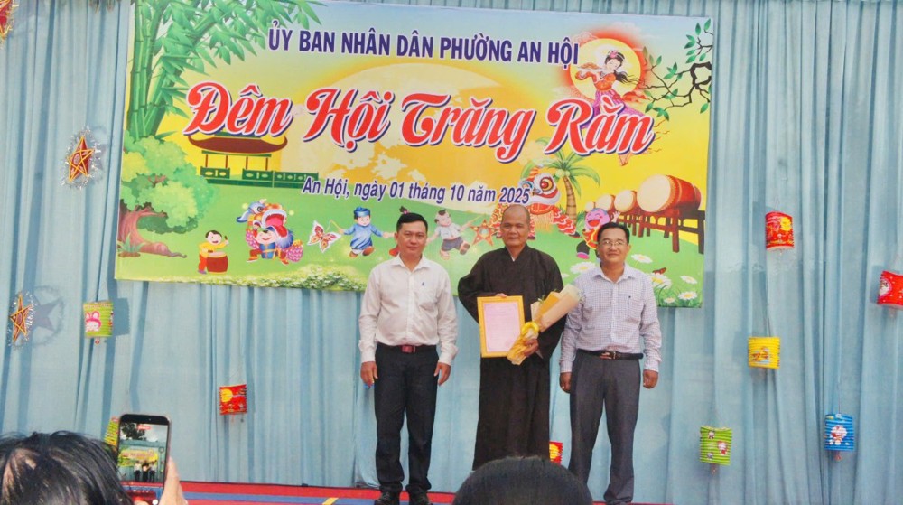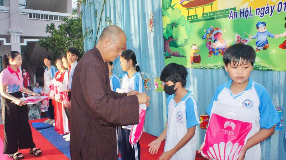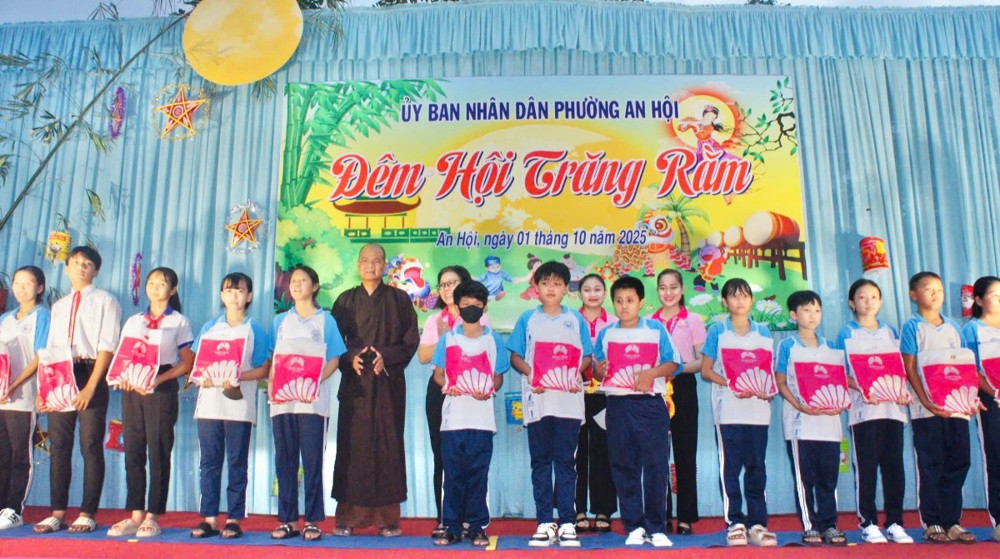 PSO – Trong không khí hân hoan của ngày Rằm tháng Tám – Tết Trung thu, khi trăng tròn toả sáng khắp muôn nơi, cũng là lúc tình thương và niềm vui được nhân rộng trong cộng đồng. Ngày 01/10/2025 (nhằm ngày 10/08/năm Ất Tỵ), Với tâm nguyện đem ánh sáng từ bi đến với thế hệ măng non, thừa chỉ đạo của Ban Từ thiện – xã Hội GHPGVN tỉnh Vĩnh Long, TT - Thích Trí Hảo – UV Ban Từ thiện – Xã hội GHPGVN tỉnh cùng quý nam nữ Phật tử nhóm An Lạc (P. An Hội) đã phát tâm tổ chức chương trình “Trung Thu Yêu Thương – Trao Gửi Ánh Trăng Rằm”, trao tặng 750 phần quà đến các em thiếu nhi tại Trường THCS Sơn Phú (P. An Hội, tỉnh Vĩnh Long). Đây là món quà tinh thần quý báu, thể hiện tình người ấm áp và sự quan tâm sâu sắc của đạo Phật đối với xã hội, đặc biệt là tuổi thơ.