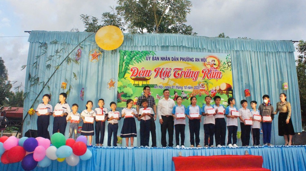 Không khí buổi trao quà rộn ràng, các em thiếu nhi tay cầm lồng đèn, nụ cười rạng rỡ trên môi, ánh mắt ngập tràn hạnh phúc. Nhiều phụ huynh không giấu được sự xúc động, bởi với các em nhỏ ở vùng quê còn nhiều khó khăn, những phần quà Trung thu này chính là niềm vui, là động lực để các em thêm tự tin vững bước trên hành trình học tập và trưởng thành.