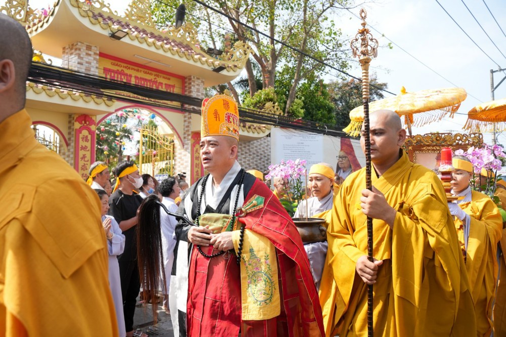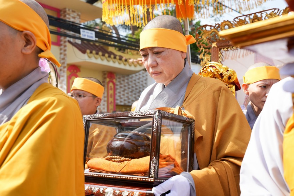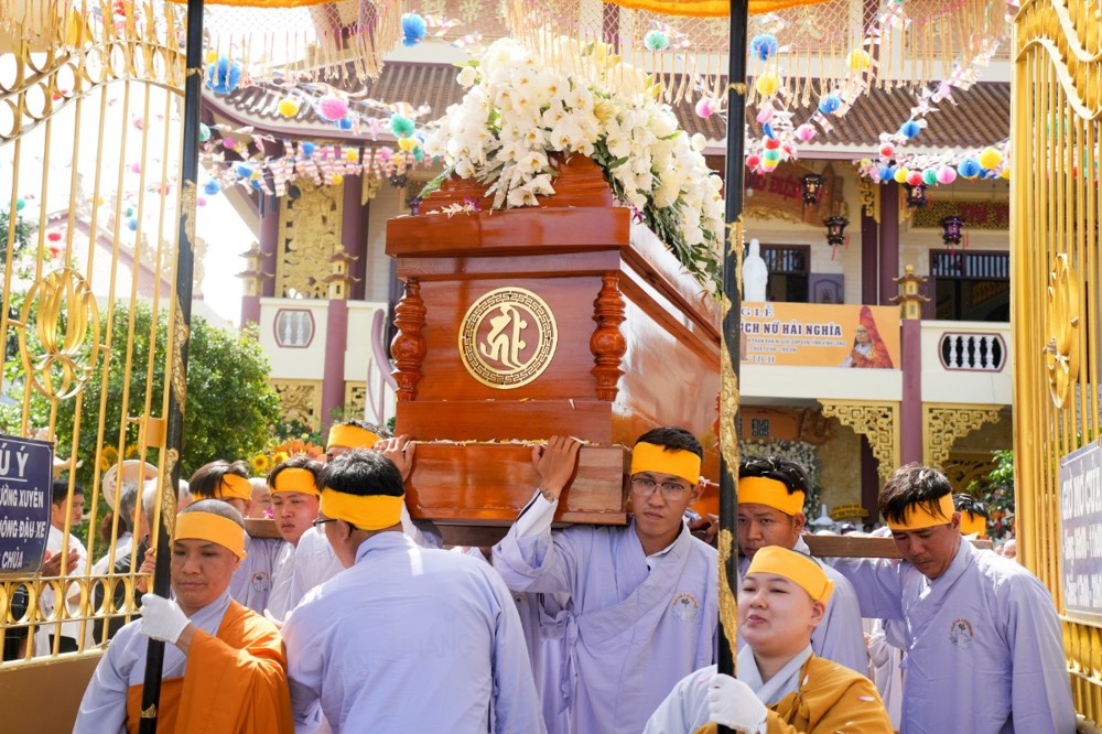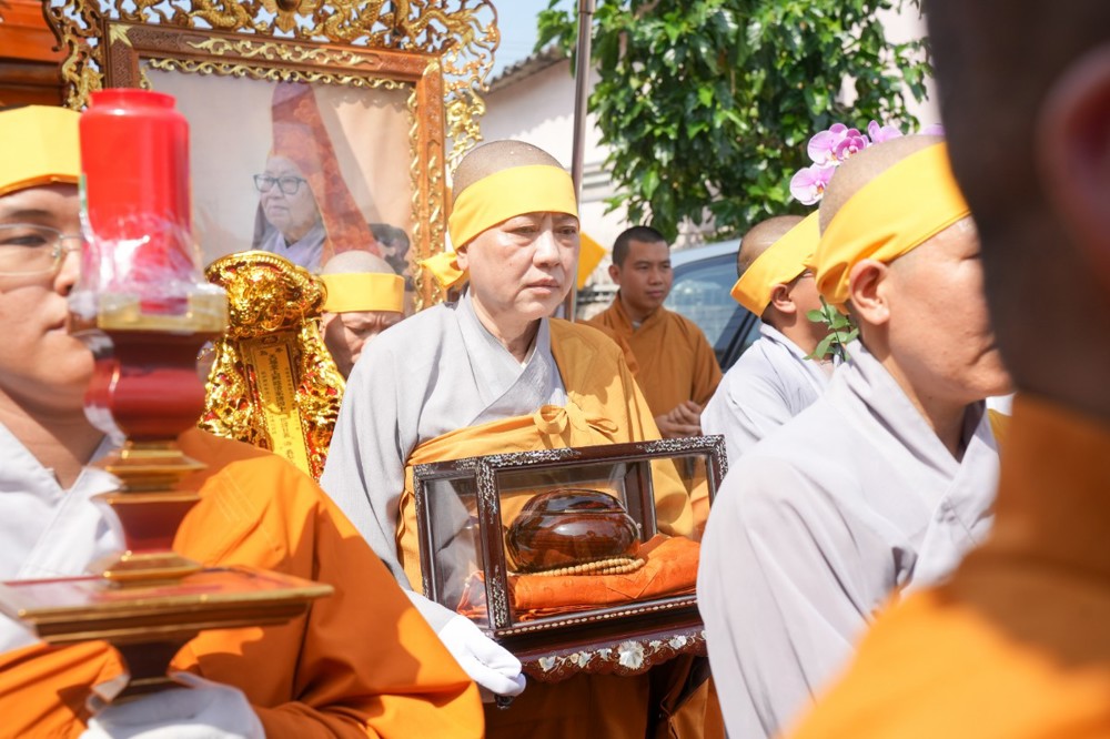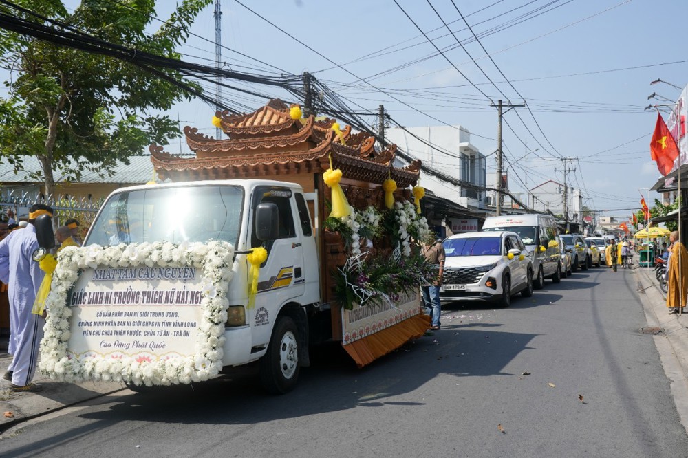 Sau đó, môn đồ pháp quyến cung thỉnh linh mô, y bát và di ảnh của Ân sư; đông đảo chư Tôn đức Tăng Ni cùng hàng Phật tử thành kính phụng tống kim quan cố Ni trưởng rời chùa Thiên Phước, di quan về Sơn trang Tiên Cảnh (TP.Cần Thơ) để cử hành lễ trà-tỳ theo nghi thức Phật giáo.