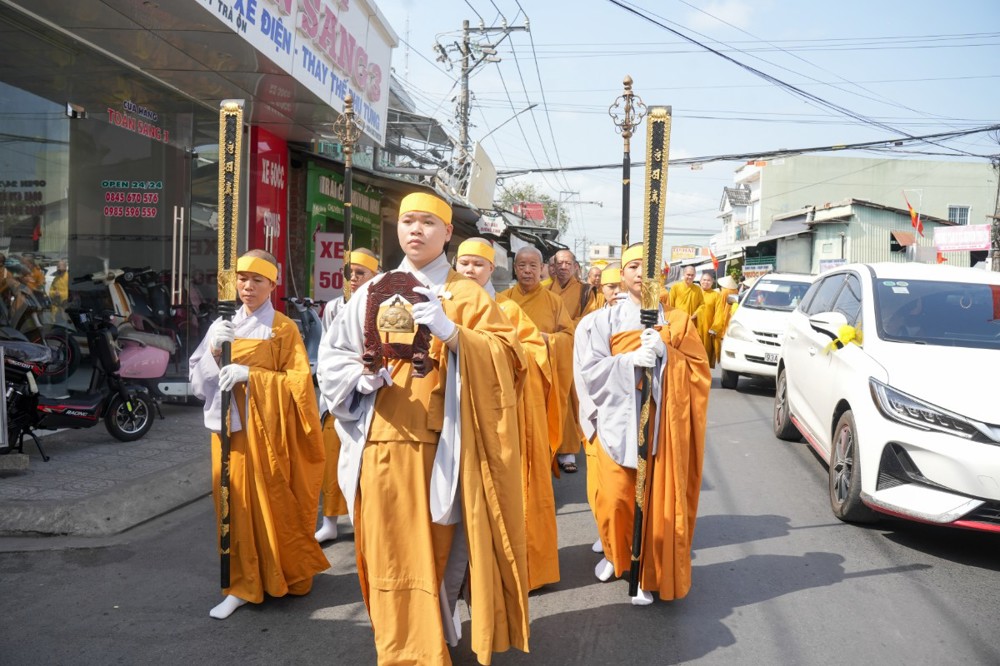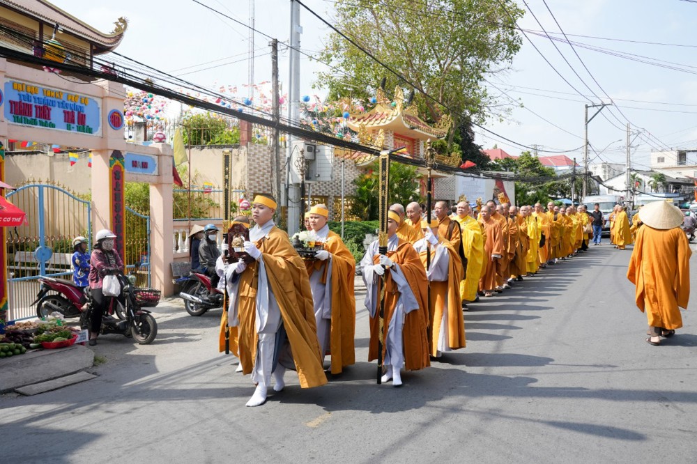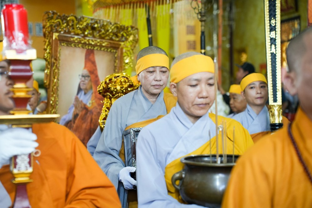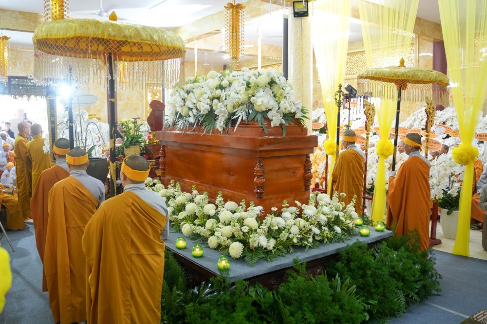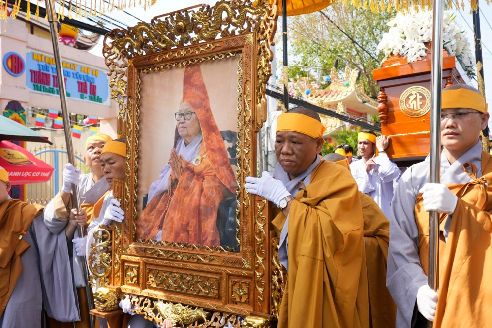 Sau đó, môn đồ pháp quyến cung thỉnh linh mô, y bát và di ảnh của Ân sư; đông đảo chư Tôn đức Tăng Ni cùng hàng Phật tử thành kính phụng tống kim quan cố Ni trưởng rời chùa Thiên Phước, di quan về Sơn trang Tiên Cảnh (TP.Cần Thơ) để cử hành lễ trà-tỳ theo nghi thức Phật giáo.