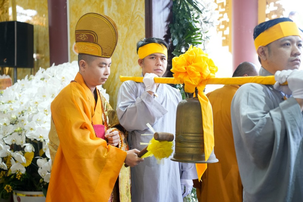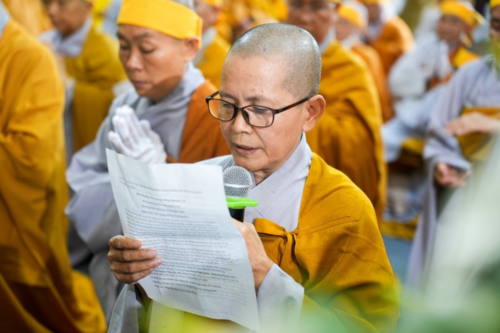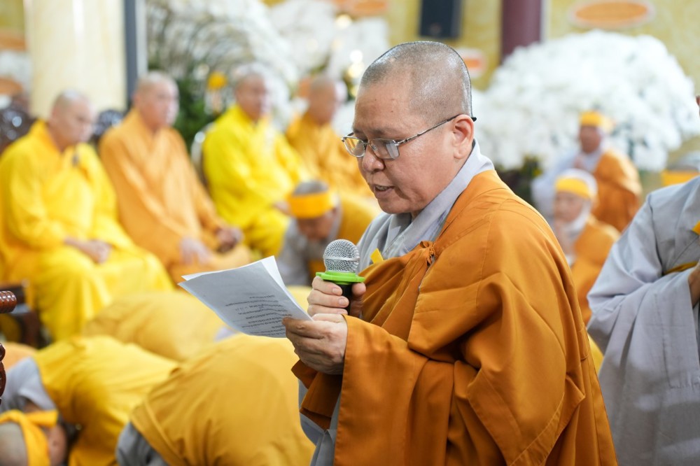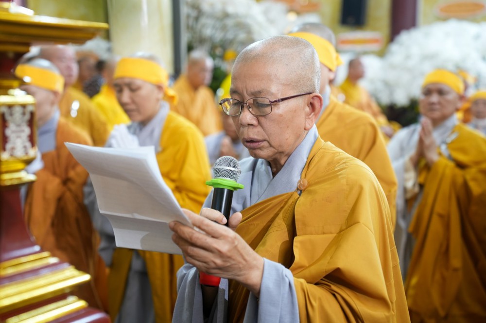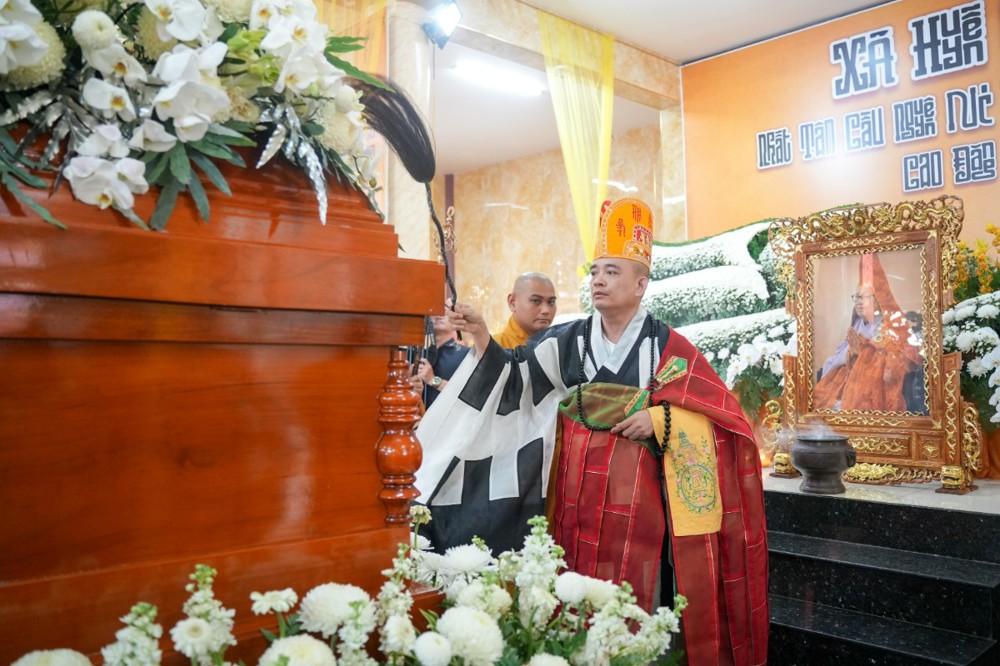 Trước giờ phụng tống kim quan, Thượng tọa Thích Phước Cường sám chủ, đã cung tuyên pháp ngữ và cử hành nghi thức phất trần theo nghi lễ thiền môn, tiễn biệt bậc trưởng lão Ni đã viên mãn đạo nghiệp, thuận theo lẽ vô thường an nhiên xả báo.