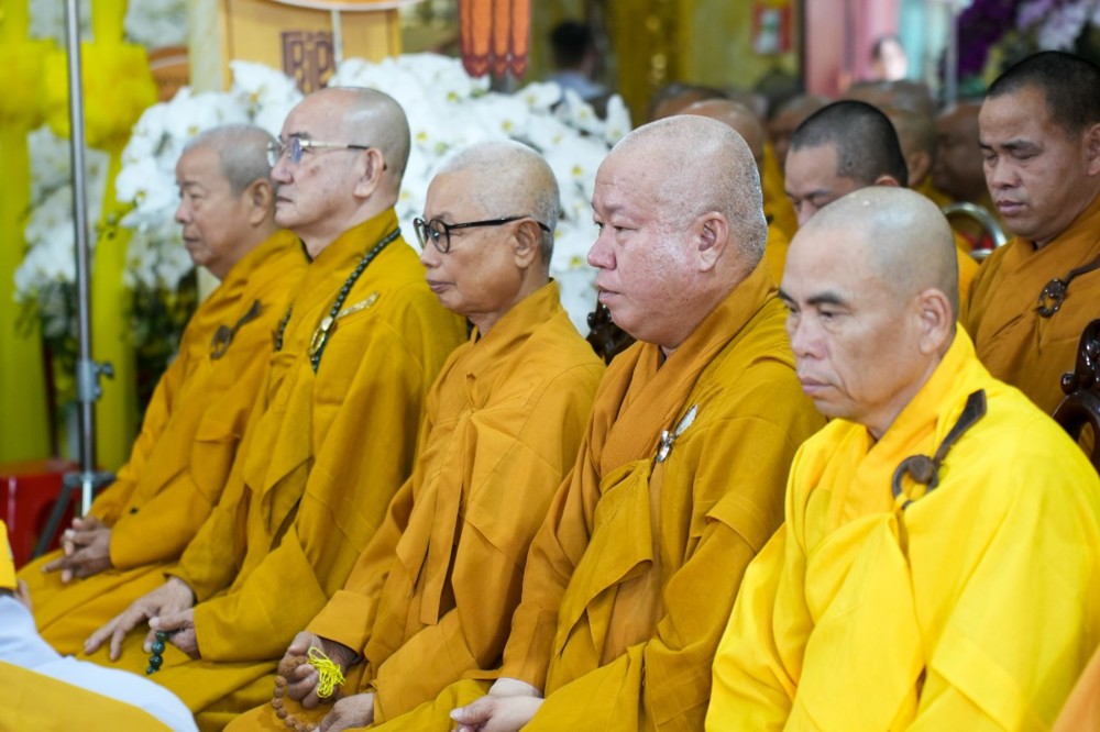 Quang lâm chứng minh và tham dự buổi lễ có TT.Thích Lệ Lạc; HT.Thích Trí Minh – đồng Ủy viên HĐTS, Phó Trưởng ban Thường trực Ban Trị sự GHPGVN tỉnh Vĩnh Long; HT.Thích Phước Cẩn – Phó Viện trưởng Viện Nghiên cứu Phật học Việt Nam; chư Tôn đức Phó Ban Trị sự GHPGVN tỉnh Vĩnh Long: TT.Thích Tâm Khiết (kiêm Chánh Thư ký), TT.Thích Phước Nguyên, TT.Thích Tánh Bình, ĐĐ.Thích Huệ Thắng, TT.Thích Long Vân, ĐĐ.Thích Thiện Tâm; ĐĐ.Thích Minh Tuấn – Phó Thư ký kiêm Chánh Văn phòng Ban Trị sự; NT.Thích Nữ Tịnh Nghiêm – Phó Trưởng Phân ban Ni giới Trung ương, Trưởng Phân ban Ni giới tỉnh Tiền Giang; cùng chư Tôn đức Tăng Ni và đông đảo môn đồ pháp quyến, Phật tử gần xa.