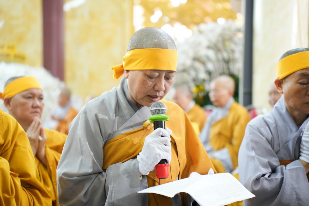 Trong niềm tiếc thương vô hạn, đại diện môn đồ pháp quyến, Ni sư Thích Nữ Đức Quang – Trụ trì chùa Thiên Phước đã dâng lời tưởng niệm Tôn sư, hồi tưởng hình ảnh bậc Thầy từ hòa, nghiêm cẩn trong giới hạnh, tận tụy giáo dưỡng môn đồ. Trước Giác linh Ân sư, Ni sư cùng môn đồ pháp quyến phát nguyện tiếp nối chí nguyện, giữ gìn và phát huy đạo nghiệp mà Tôn sư đã dày công vun bồi, nguyện không phụ công ơn giáo dưỡng của bậc Thầy khả kính.