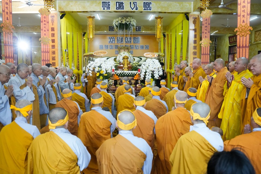 Trong không khí lắng đọng của giờ phút nghìn thu tiễn biệt, chư Tôn đức giáo phẩm, chư Tăng Ni cùng môn đồ pháp quyến và Phật tử trang nghiêm dâng hương tưởng niệm, đảnh lễ bái biệt Giác linh cố Ni trưởng Thích Nữ Hải Nghĩa – bậc Ni trưởng khả kính đã trọn đời dâng hiến cho đạo pháp và chúng sinh.