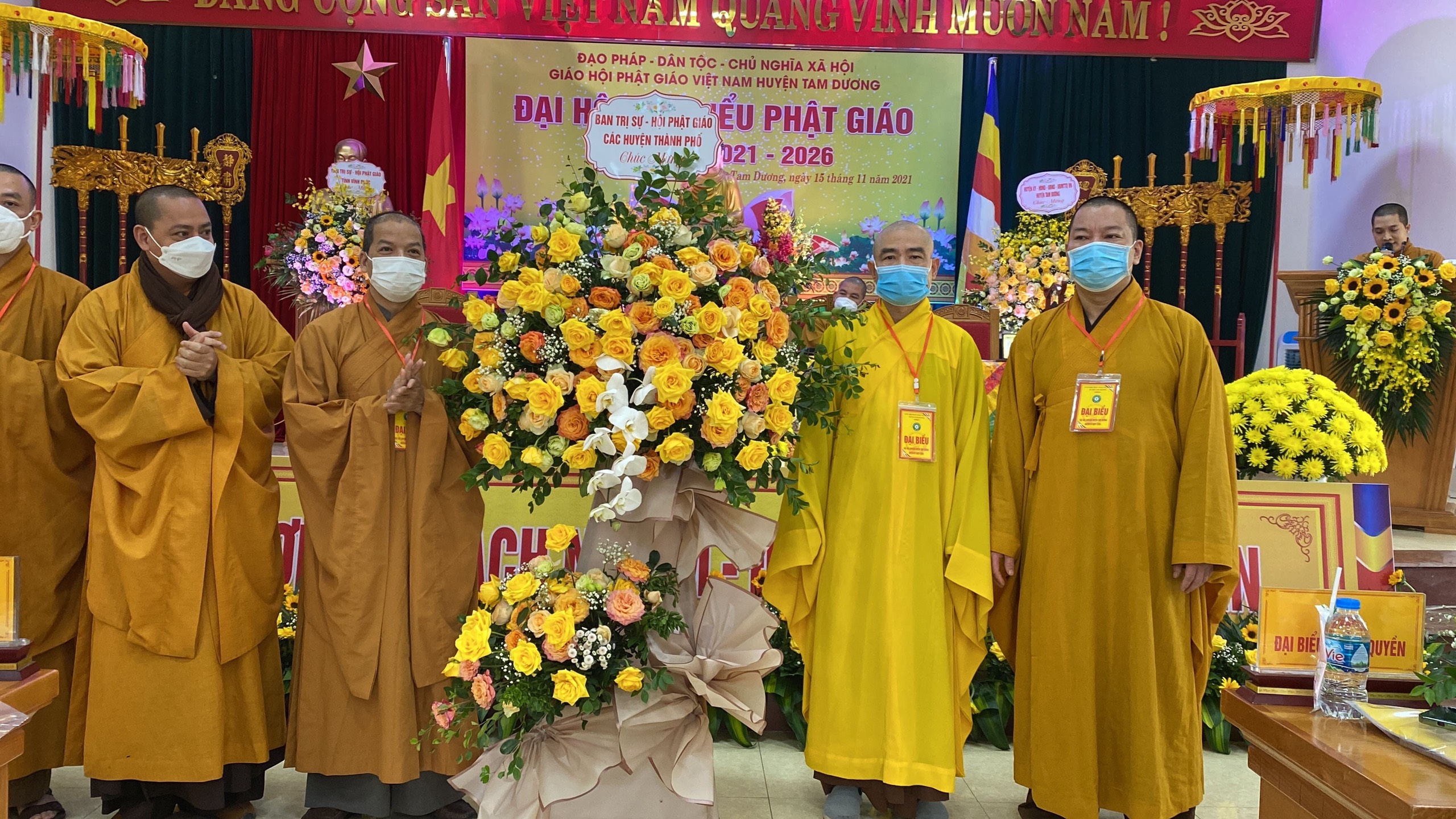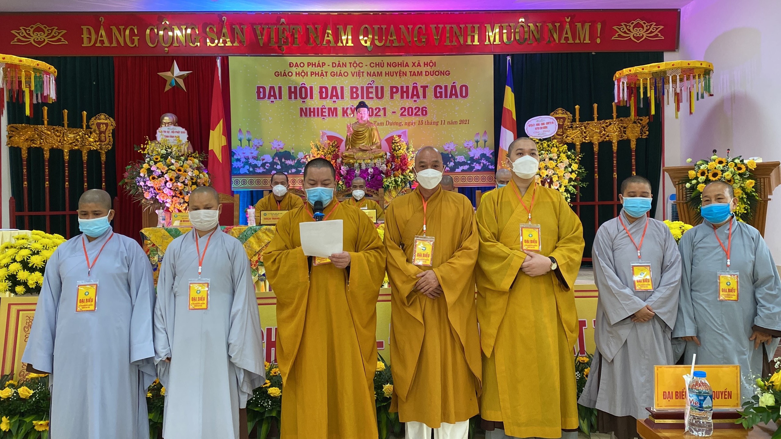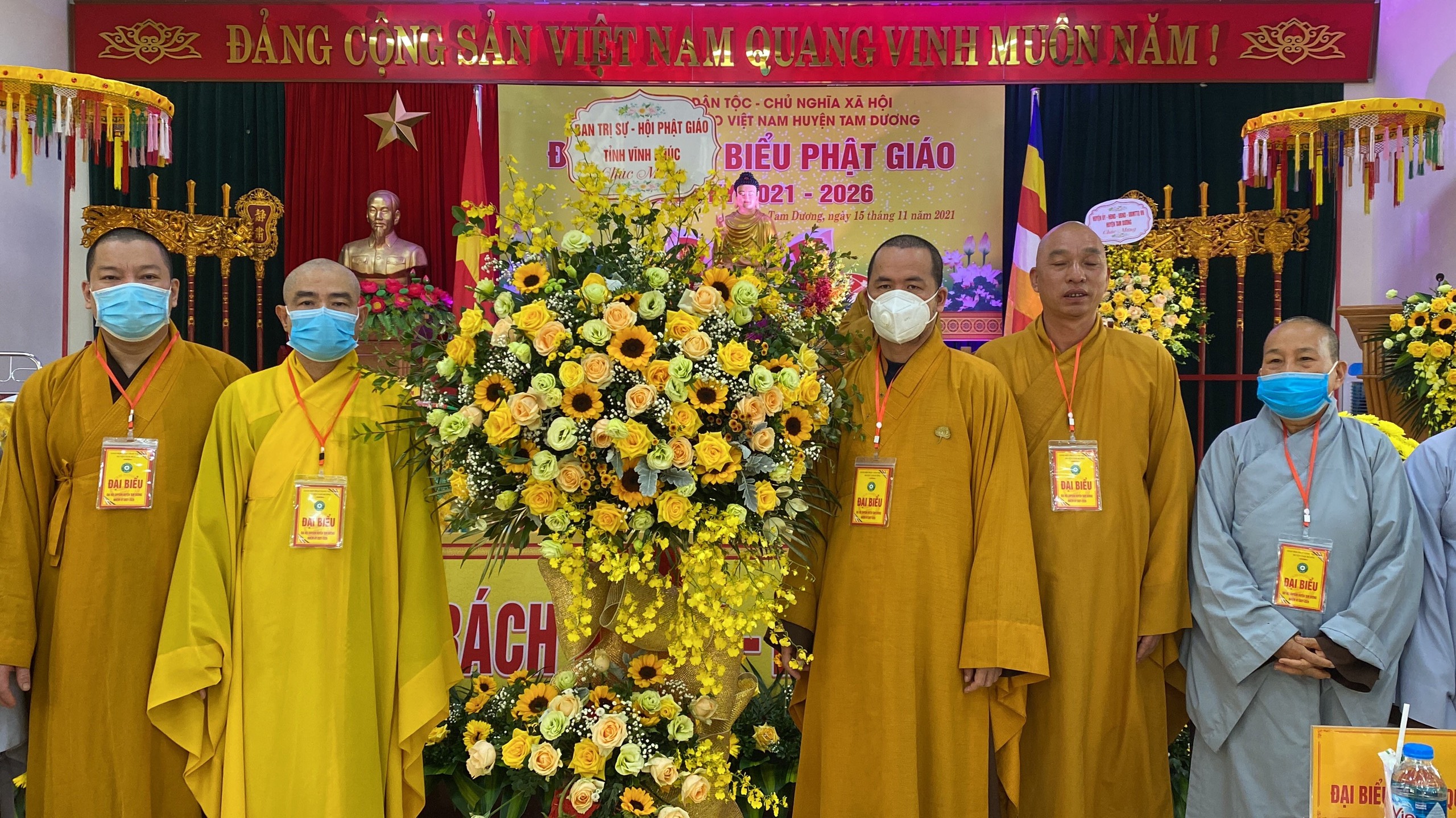 Huyện Tam Dương có diện tích 10.704ha, bao gồm có 12 xã và 1 thị trấn. Được biết, huyện Tam Dương hiện có 63 ngôi chùa lớn nhỏ, trong đó 11 ngôi chùa có quý thầy trụ trì và kiêm nhiệm trụ trì trên tổng số 28 vị Tăng- Ni toàn huyện, còn lại là do Phật tử và nhân dân địa phương quản lý. Qua báo cáo công tác Phật sự nhiệm kỳ 2016 – 2021 và phương hướng hoạt động nhiệm kỳ 2021 – 2026 do ĐĐ. Thích Minh Sơn phát biểu, có thể thấy rõ: Trong nhiệm kỳ 2016 – 2021 vừa qua, về cơ bản, BTS Phật giáo huyện Tam Dương cũng như toàn thể Tăng Ni thành viên đã không ngừng củng cố, phát triển các mặt hoạt động của Phật giáo huyện nhà, tăng cường sự đoàn kết hòa hợp trong nội bộ Tăng Ni, Tăng Ni với nhân dân, Phật tử tại các cơ sở tự viện với tinh thần “Đoàn kết hòa hợp, trưởng dưỡng đạo tâm, trang nghiêm Giáo hội”. Tại Đại Hội, ĐĐ. Thích Minh Sơn đã công bố mãn nhiệm nhân sự ở nhiệm kỳ 2016-2021, đồng thời Đại hội tiến hành các nội dung giới thiệu nhân sự dự kiến suy cử vào BTS và Thường trực BTS huyện Tam Dương nhiệm kỳ 2021-2026; Đại hội đã suy cử ra 9 vị Tăng- Ni tham gia BTS gồm 3 vị tham gia Ban Thường Trực và 6 vị Uỷ Viên. Theo đó, BTS nhiệm kỳ mới do ĐĐ. Thích Tâm Vượng làm Trưởng Ban và ĐĐ. Thích Minh Sơn làm phó ban. Nhận được sự đồng thuận và nhất trí cao khi kiện toàn nhân sự mới tại Đại Hội, ĐĐ. Thích Tâm Vượng đã thay mặt các thành viên BTS phát biểu nhận nhiệm vụ, hứa sẽ cố gắng thực hiện theo đúng Hiến chương, nội quy Tăng sự của Giáo hội, quy chế của BTS huyện Tam Dương đã đề ra và thực hiện theo đúng các quy định của GHPGVN tỉnh Vĩnh Phúc trên tinh thần lục hòa đoàn kết, nguyện đem hết sức mình để cống hiến và làm tròn trách nhiệm mà Đại hội đã tin tưởng và giao phó.